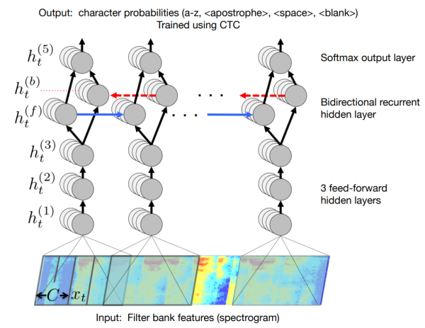 百度的 DeepSpeech 就是一个典型的端到端的语音识别框架: