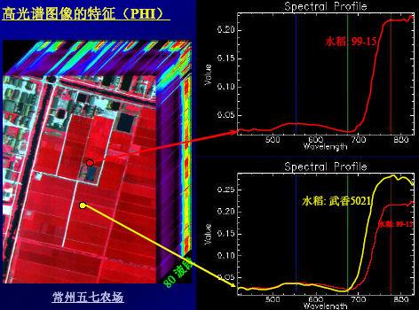 多光谱用于识别农业作物信息,不仅能识别植被类别,现在的精度已经能够达到识别哪种水稻品种,有什么种类病害,生长水平。